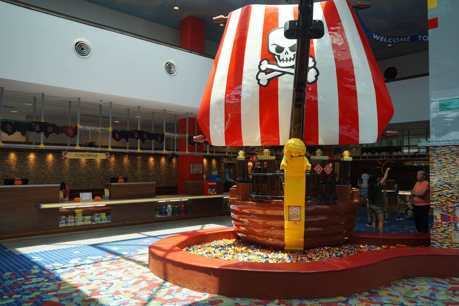 The lobby of the Hotel is big and you can find a castle and a pirate ship there. Children have a good time making the best Lego bricks they liked.
